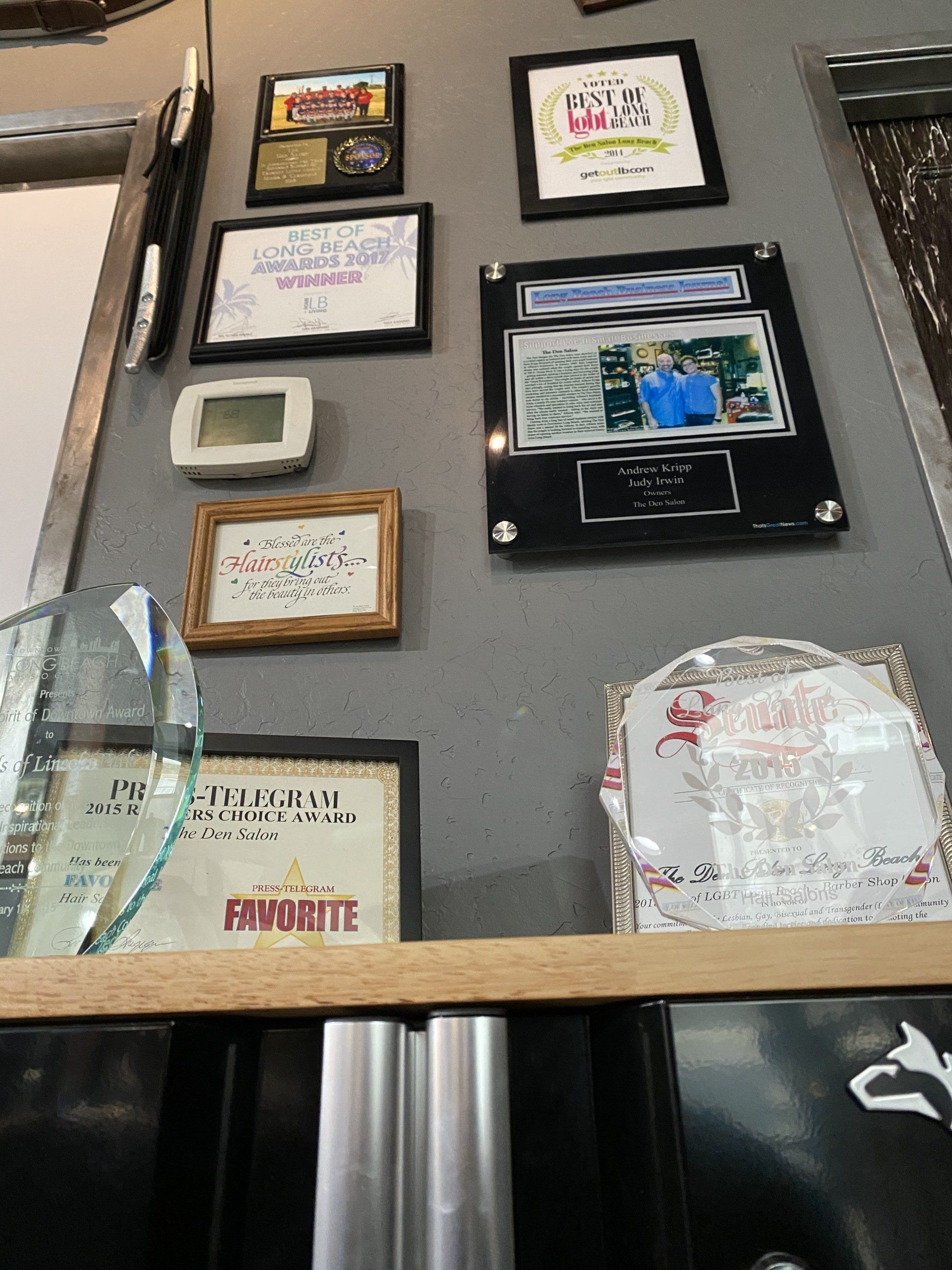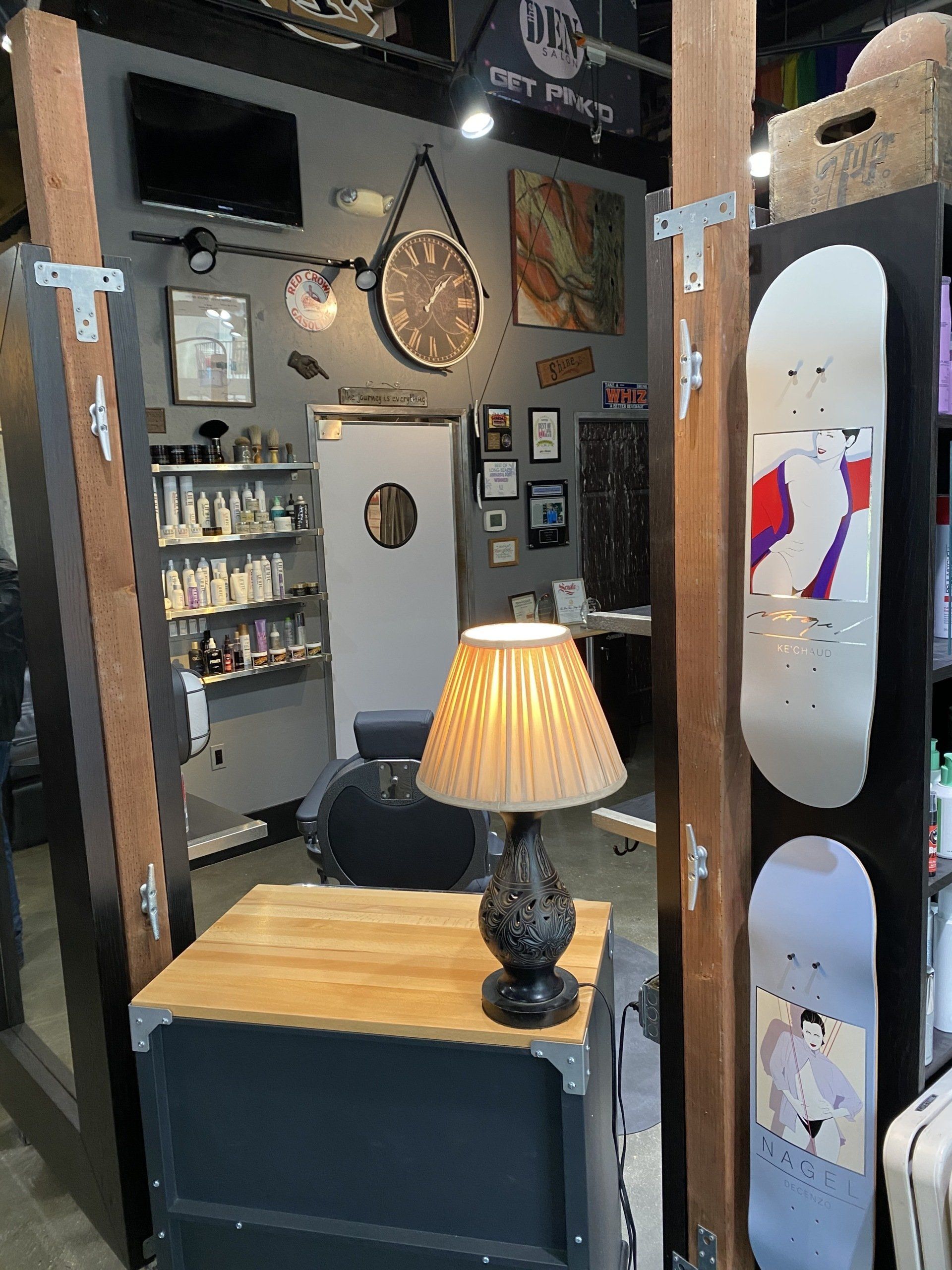 Custom art decorating the salon walls. Take a peek during your next haircut.